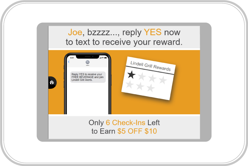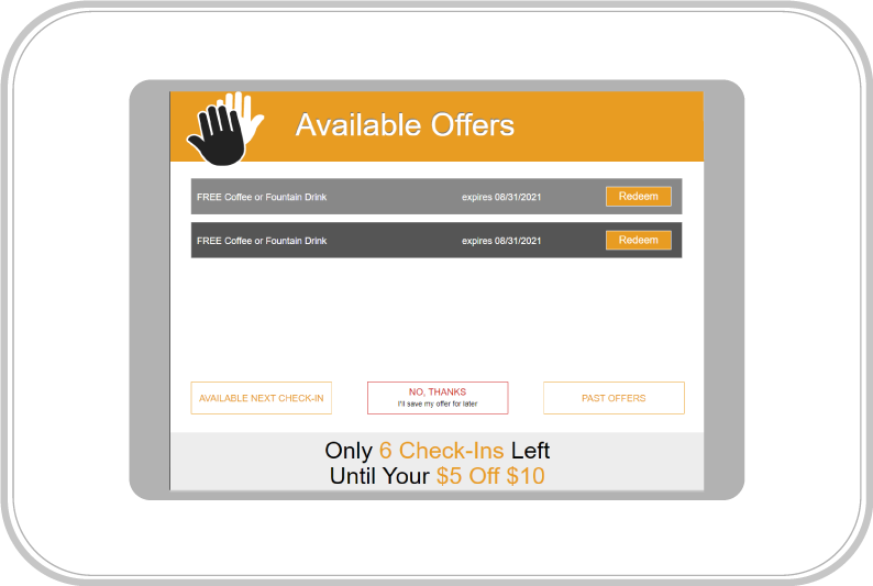 Fast & Easy Sign-up With the Connect Burst cellular-enabled custom loyalty kiosk you’ll increase your sign-ups as much as 10x. The kiosk should be placed at your point-of-sale, hostess station, etc.